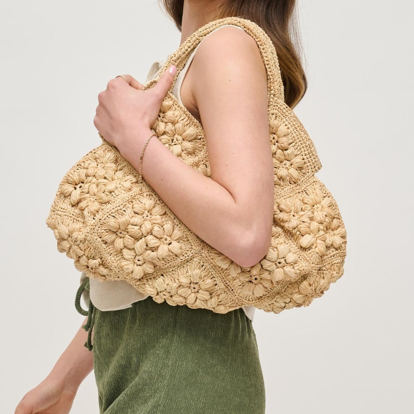- Exterior Details: Floral Woven Design, Gold Hardware