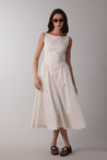 Solid Color U-shape Boat Neck Flare Midi Dress