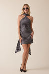 Stain Polka Dot Long Scarf Bias Cut Mini Dress