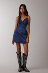Suede Solid Color Scallop Cut V-neck Mini Dress