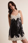 Holiday Dark Sequin Off-white Lace Mini Dress