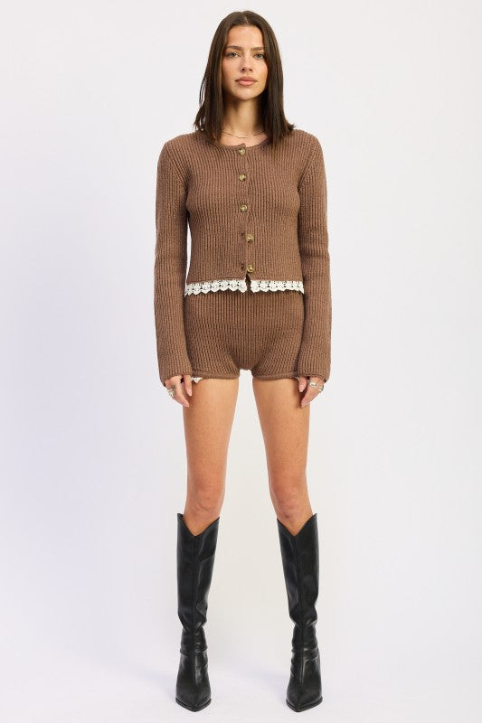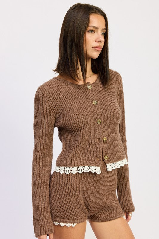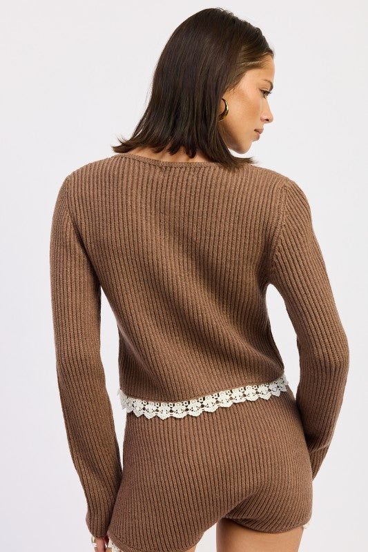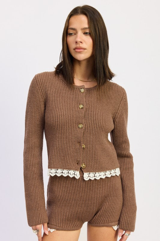 Ribbed Cardigan with Crochet Lace Detail