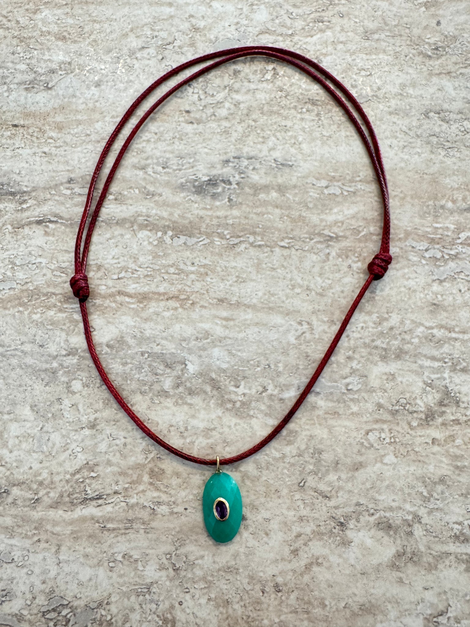 Elevate your everyday style with this refined green stone cord necklace. Featuring a natural stone pendant suspended from a durable cord, this piece combines organic beauty with understated sophistication. The soft pink hue complements a range of complexions and wardrobe choices, making it a versatile addition to your jewelry collection. Perfect for layering or wearing solo, this necklace transitions seamlessly from casual to polished occasions. A timeless accessory that brings warmth and elegance to any ensemble.